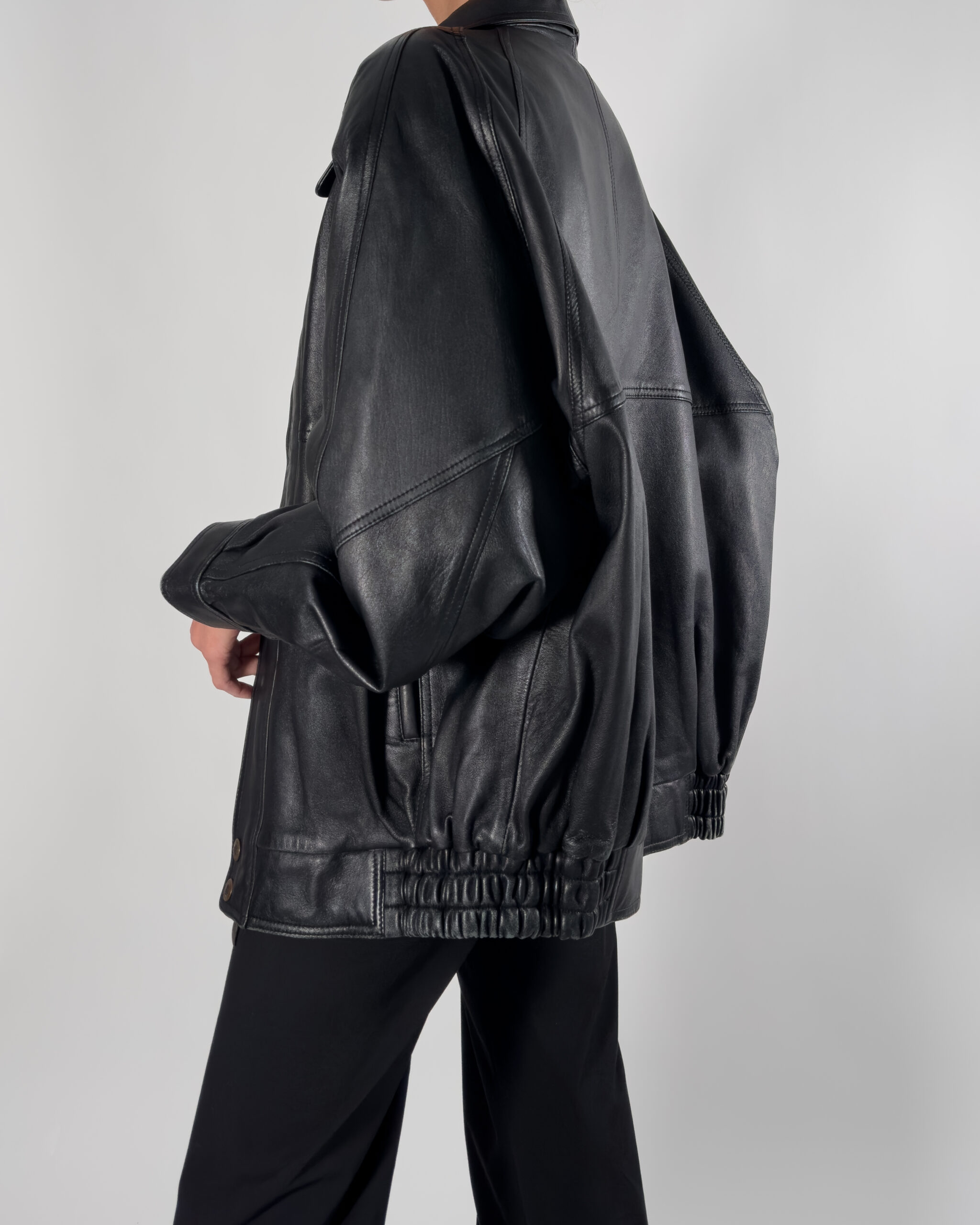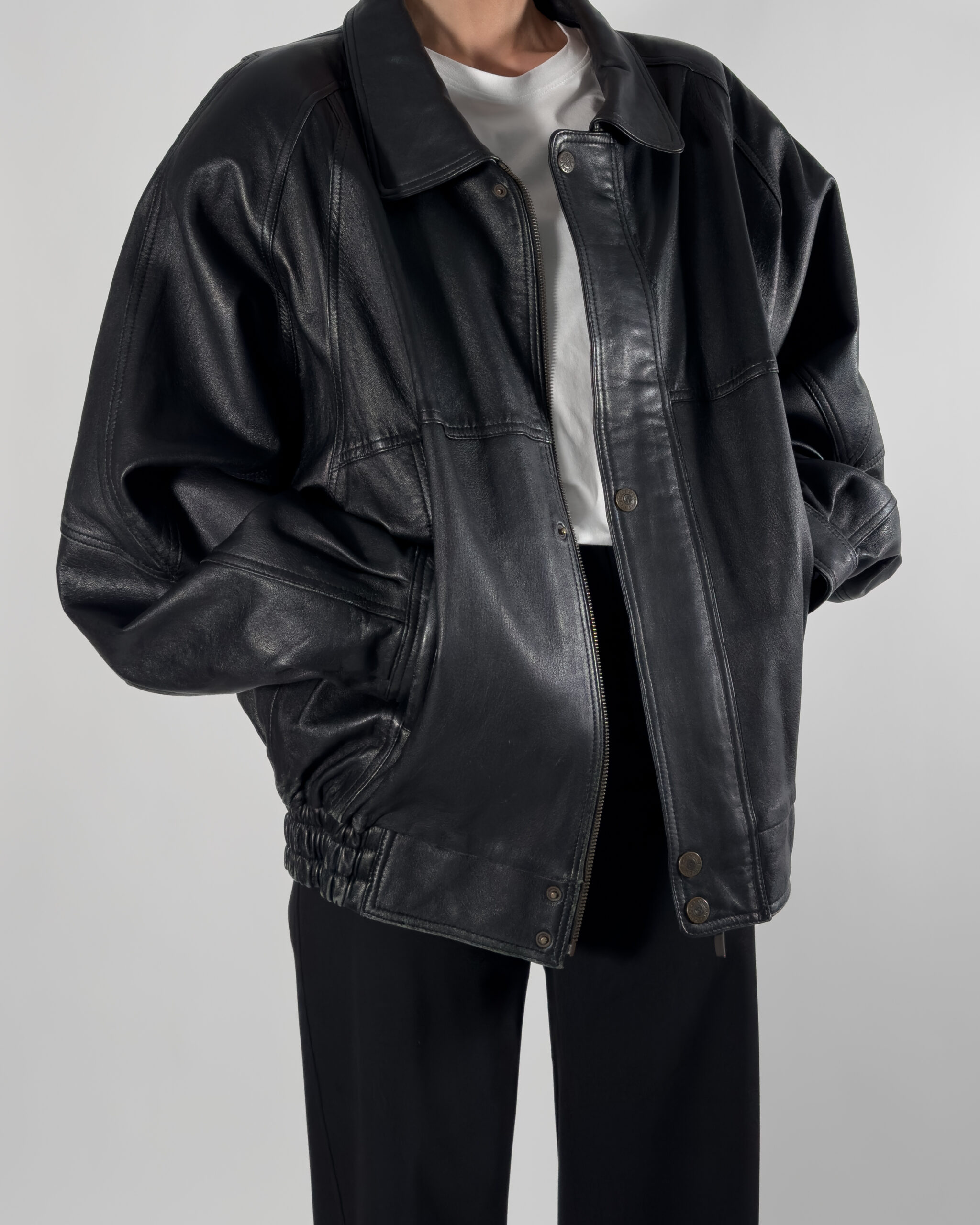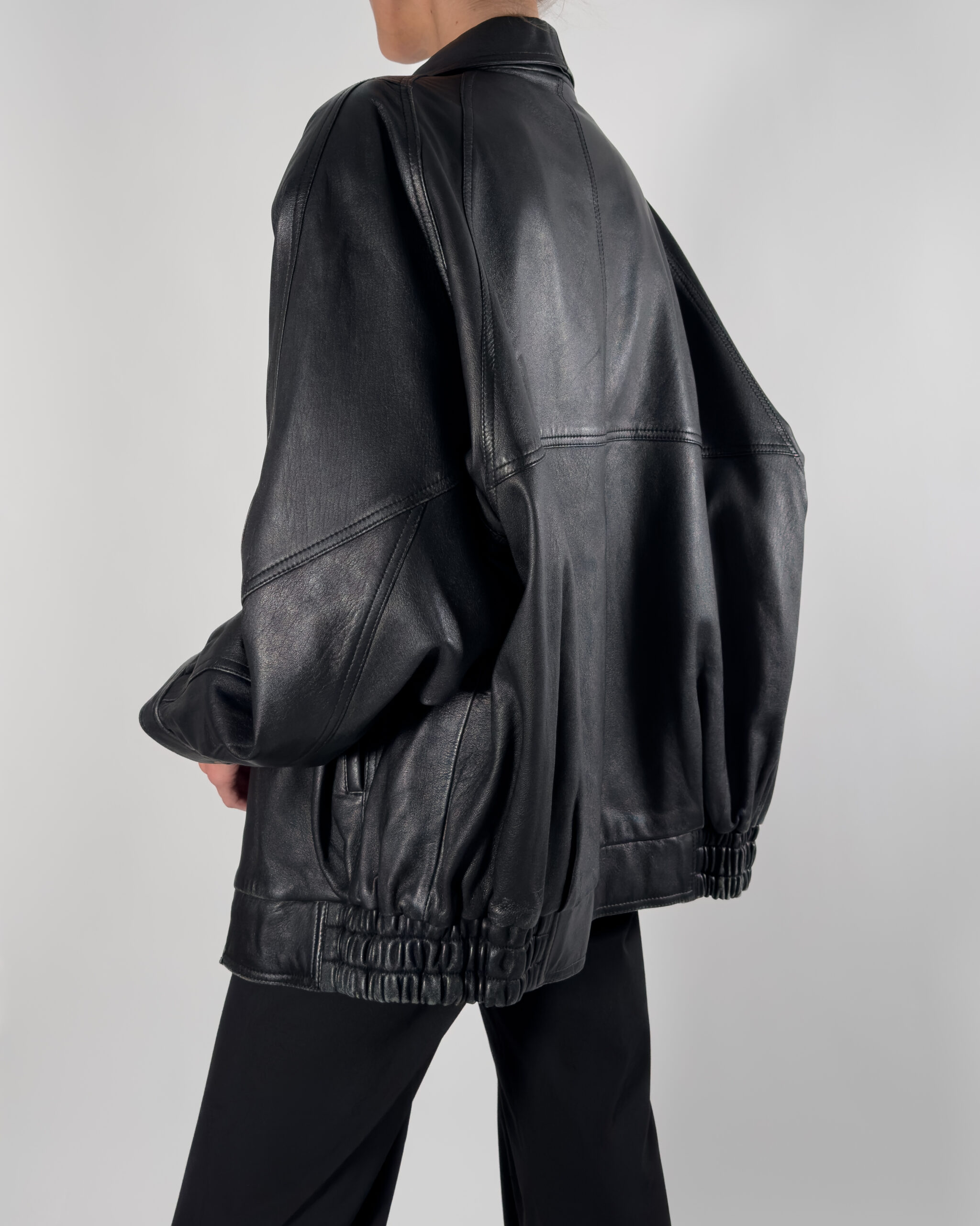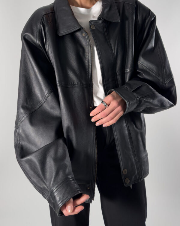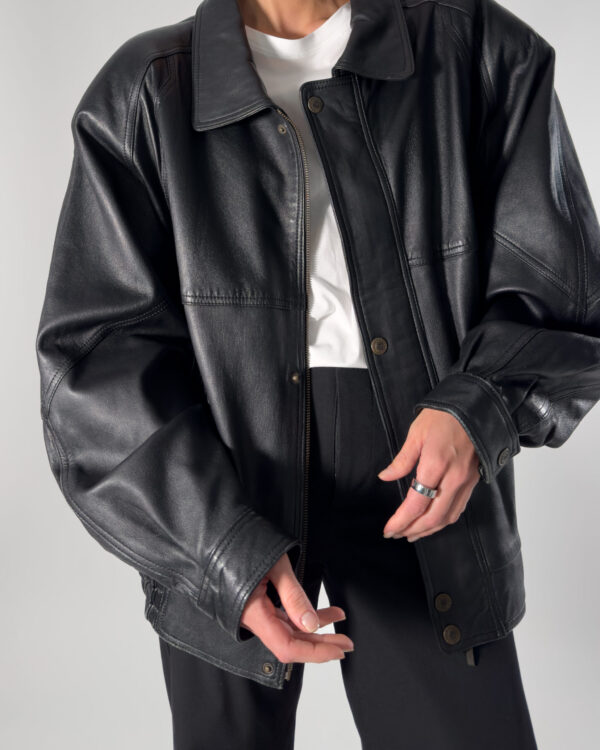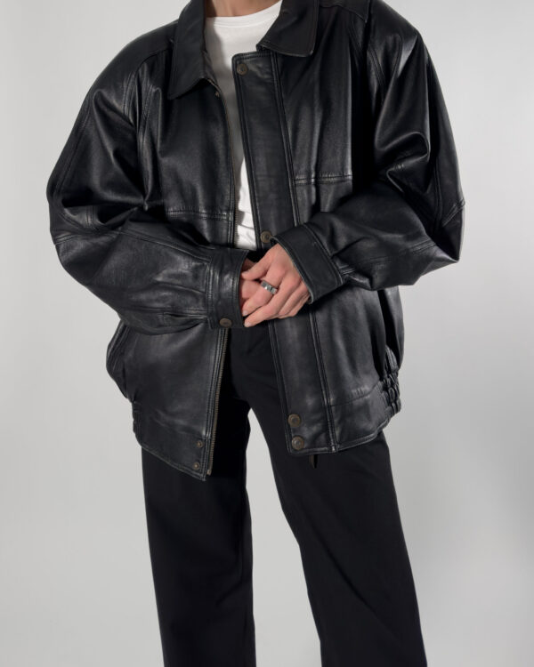 Cobalt genuine leather bomber jacket in sleek black. By Australian designer, this jacket features high-quality, soft leather.