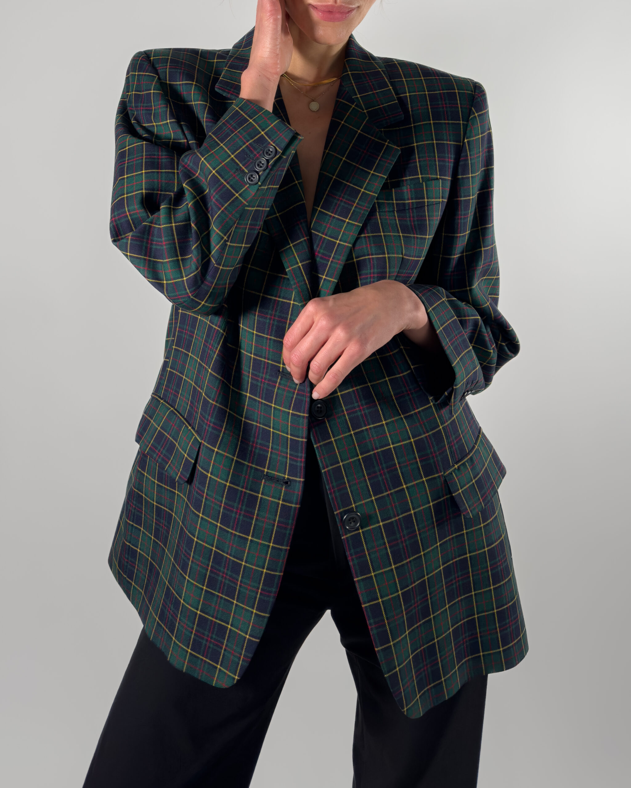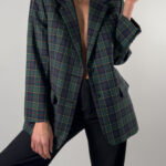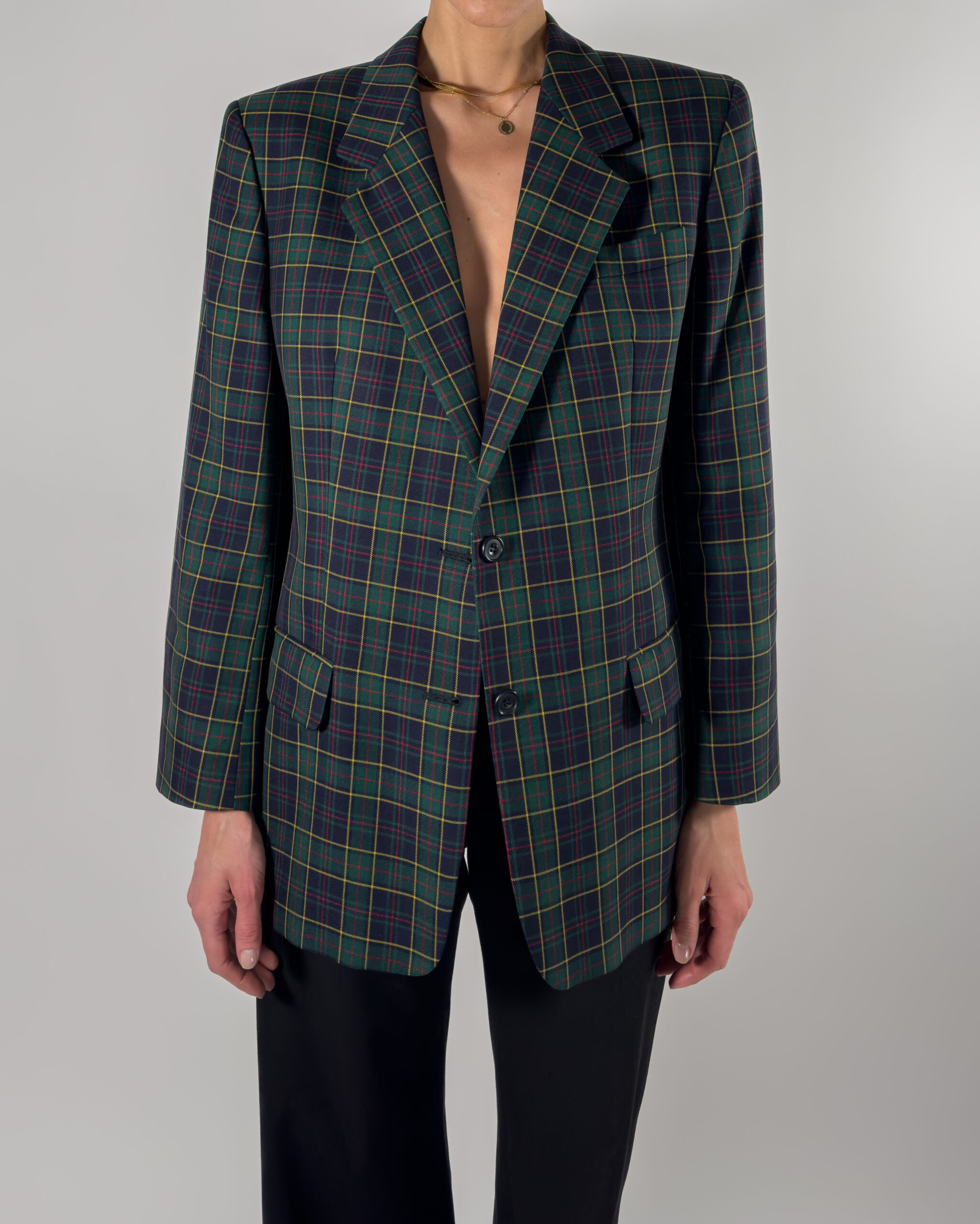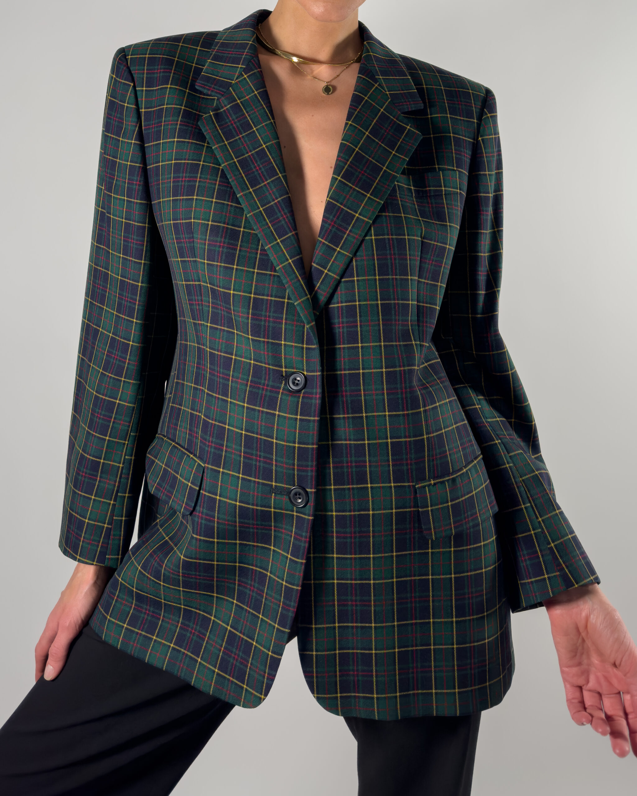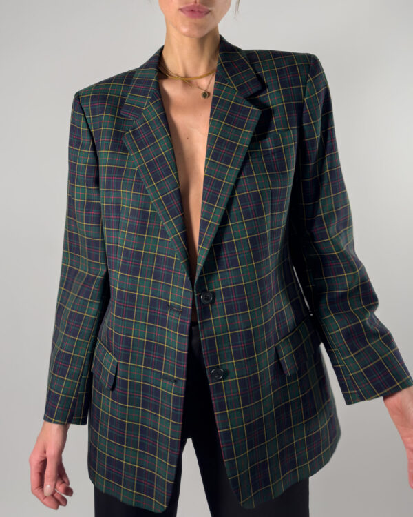 DAKS London Checkered Wool Blazer | Dark Blue & Green