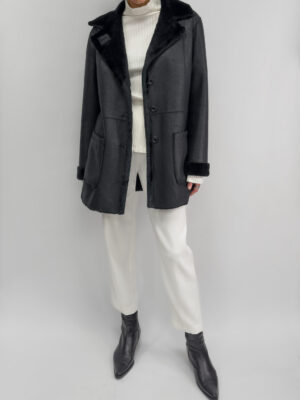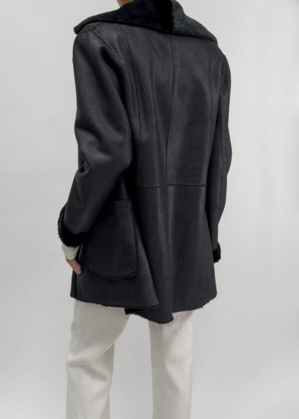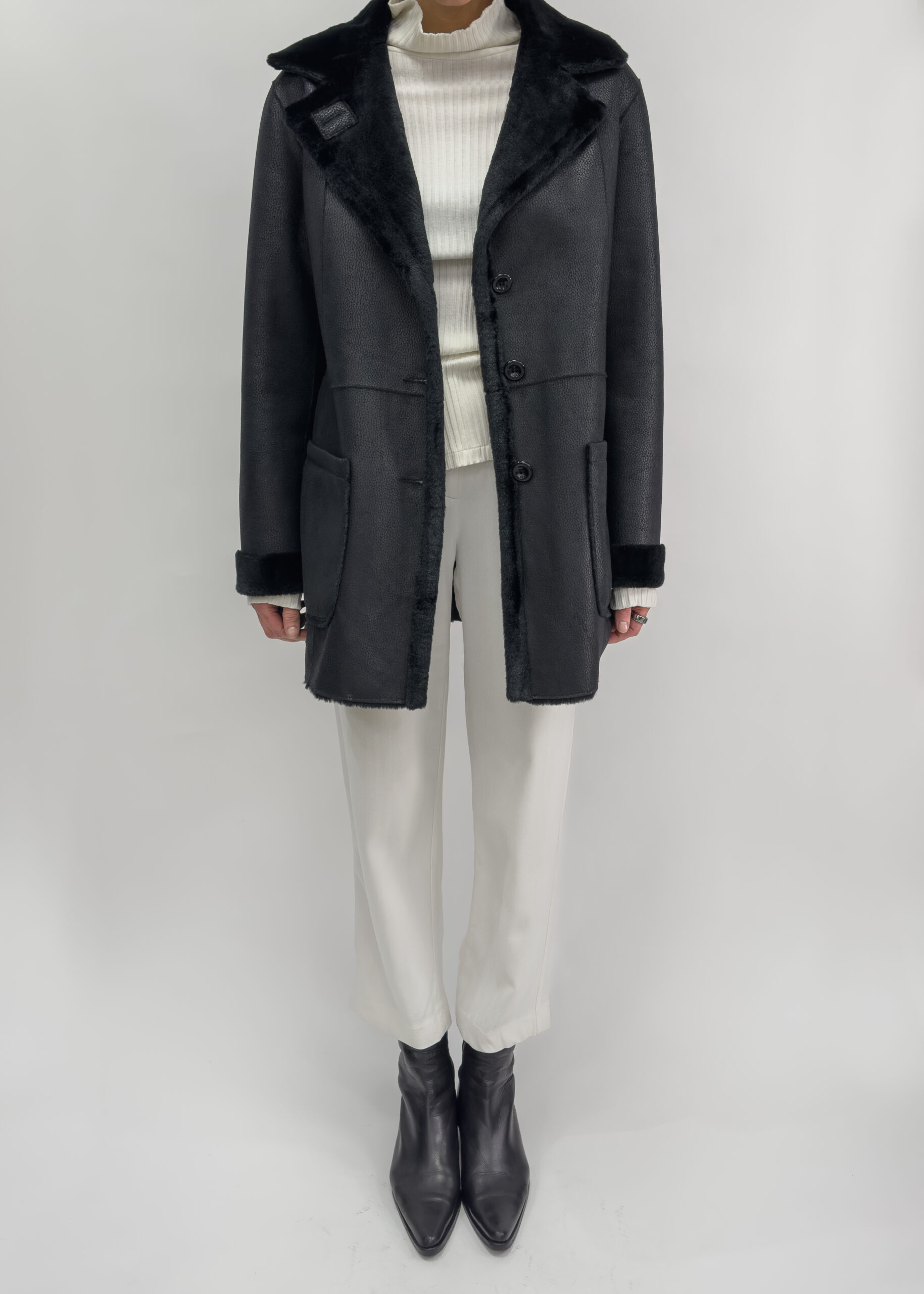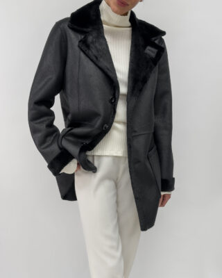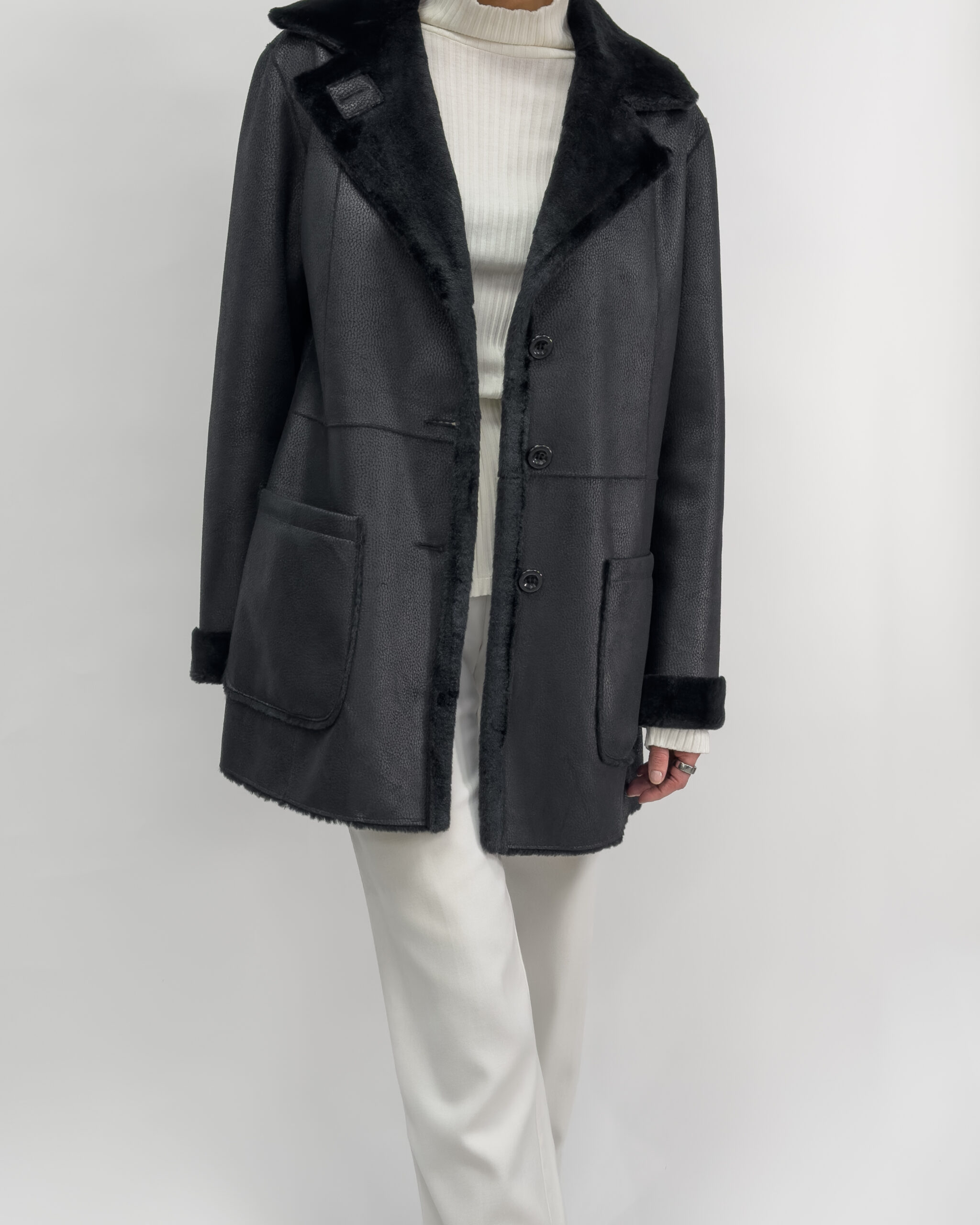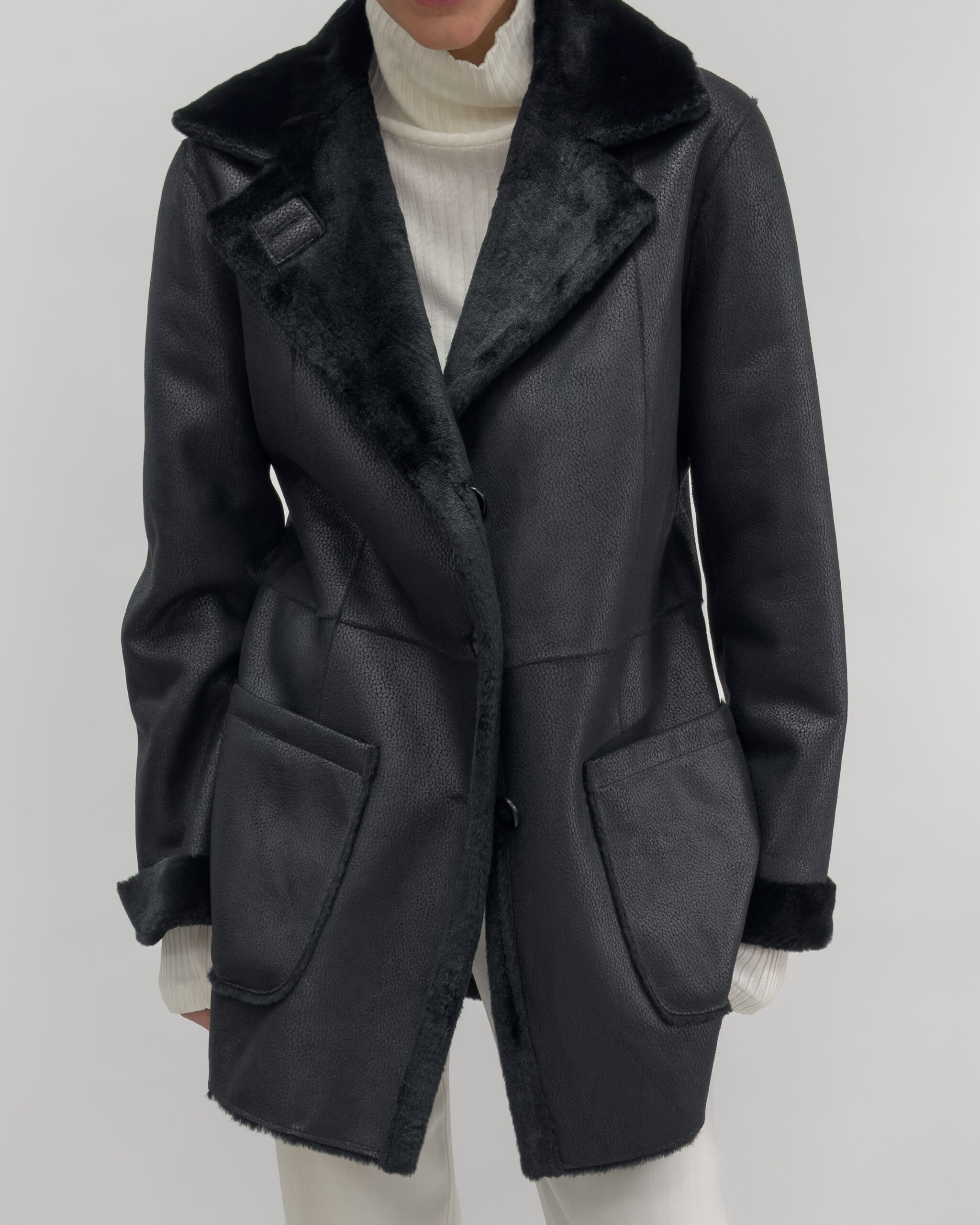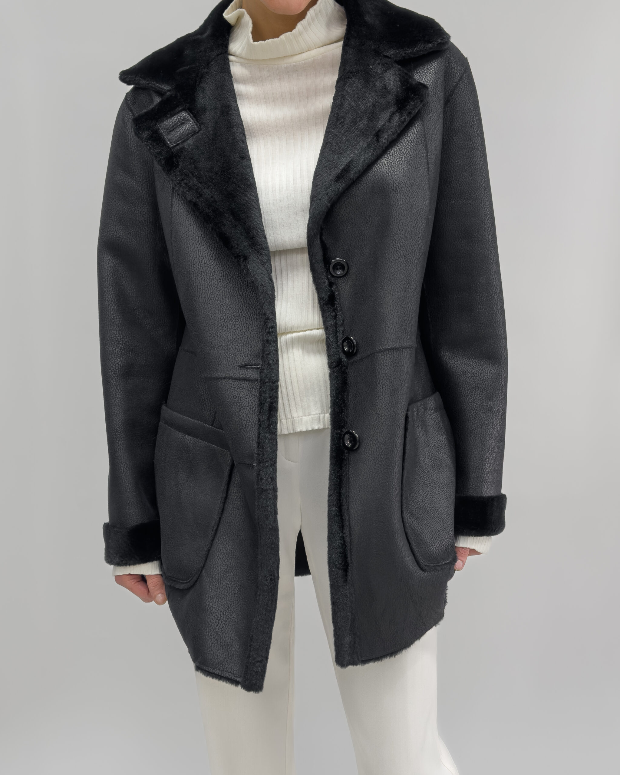 Indulge in the warmth and softness of our black faux fur shearling coat