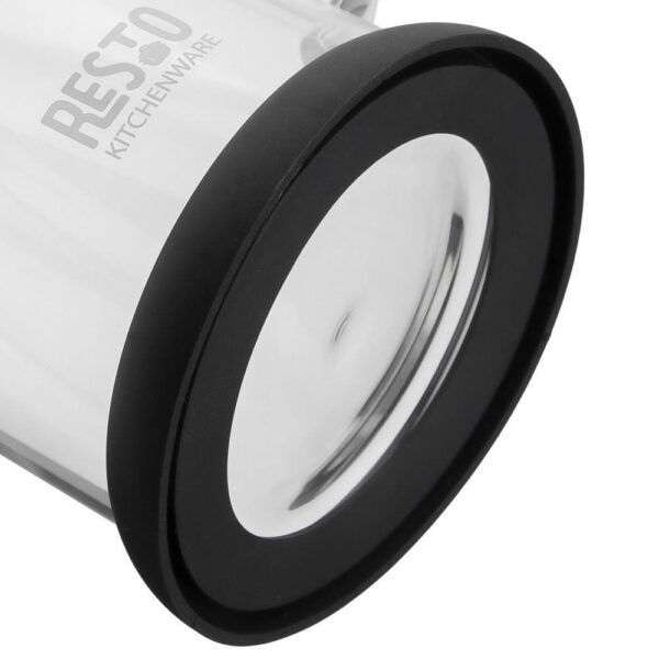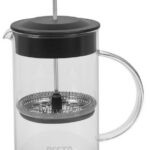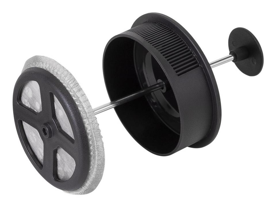 Flask with a glass handle is made of a borosilicate heat-resistant glass Stainless steel filter Plastic lid Silicone removable non-slip base (creates the effect of sticking to a smooth surface of a table, which prevents accidental slipping and tipping)