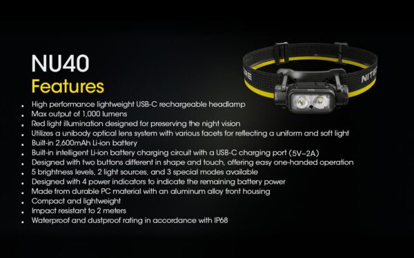 HEADLAMP NU SERIES 1000 LUMENS/NU40 NITECORE