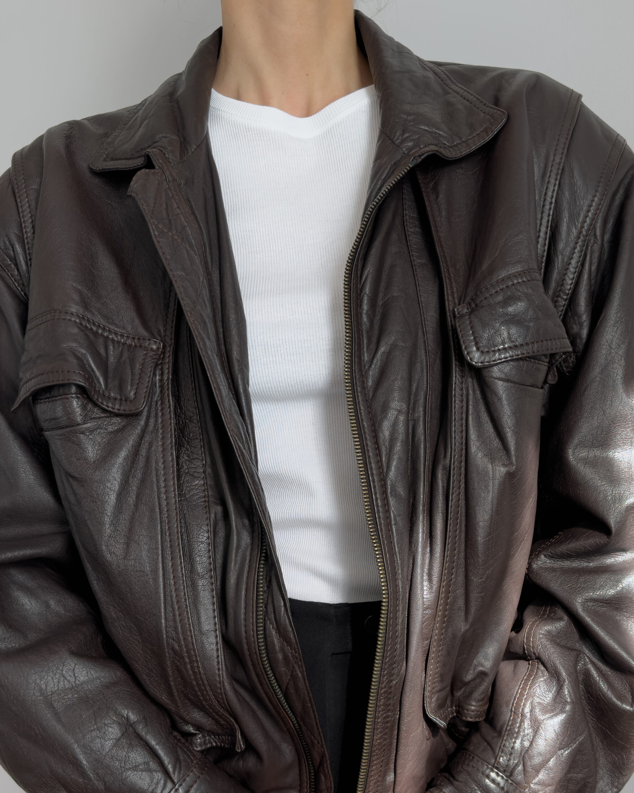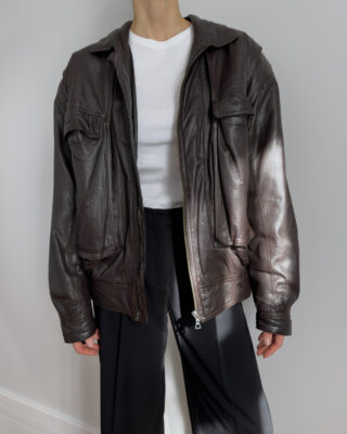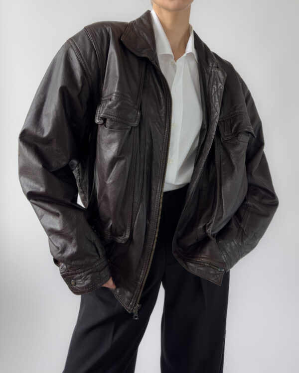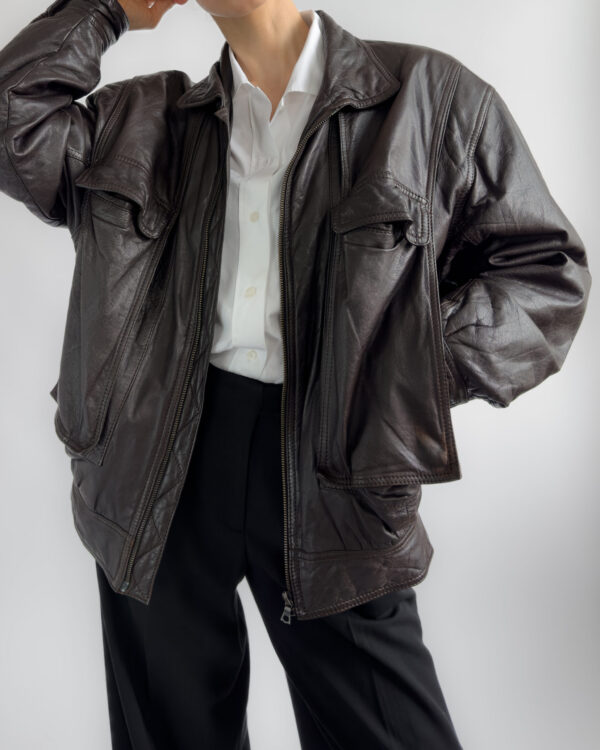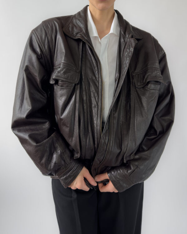 Lambskin leather bomber | Chocolate brown