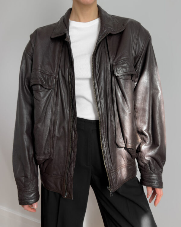 Made from lambs leather, this bomber jacket features a relaxed, cocoon-like silhouette with exaggerated volume.