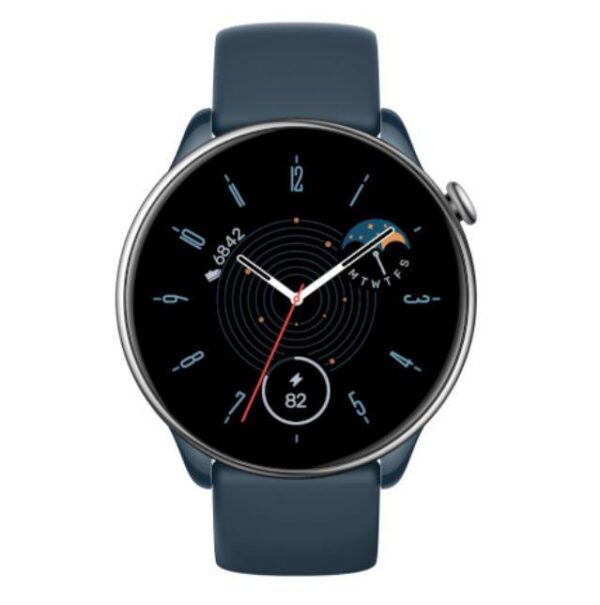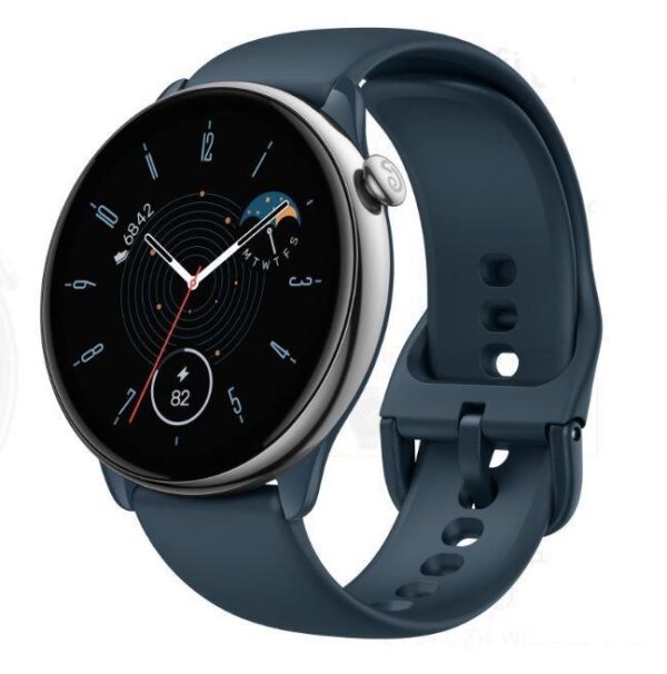 Amazfit GTR Mini | Screen 1.28″ | Display technology AMOLED | Resolution 416 x 416 | Wireless connections Bluetooth | GPS | Material housing Stainless steel | Colour Blue | Battery capacity 280 mAh | Operating System Zepp OS | Dimensions 42.83×42.83×9.25mm | Weight 0.036 kg